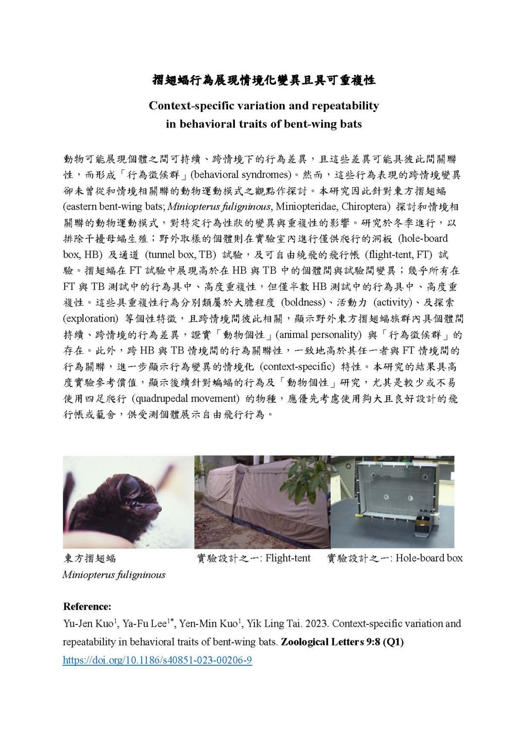 理論生態・演化生態・氣候變遷 三個研究室合作發表